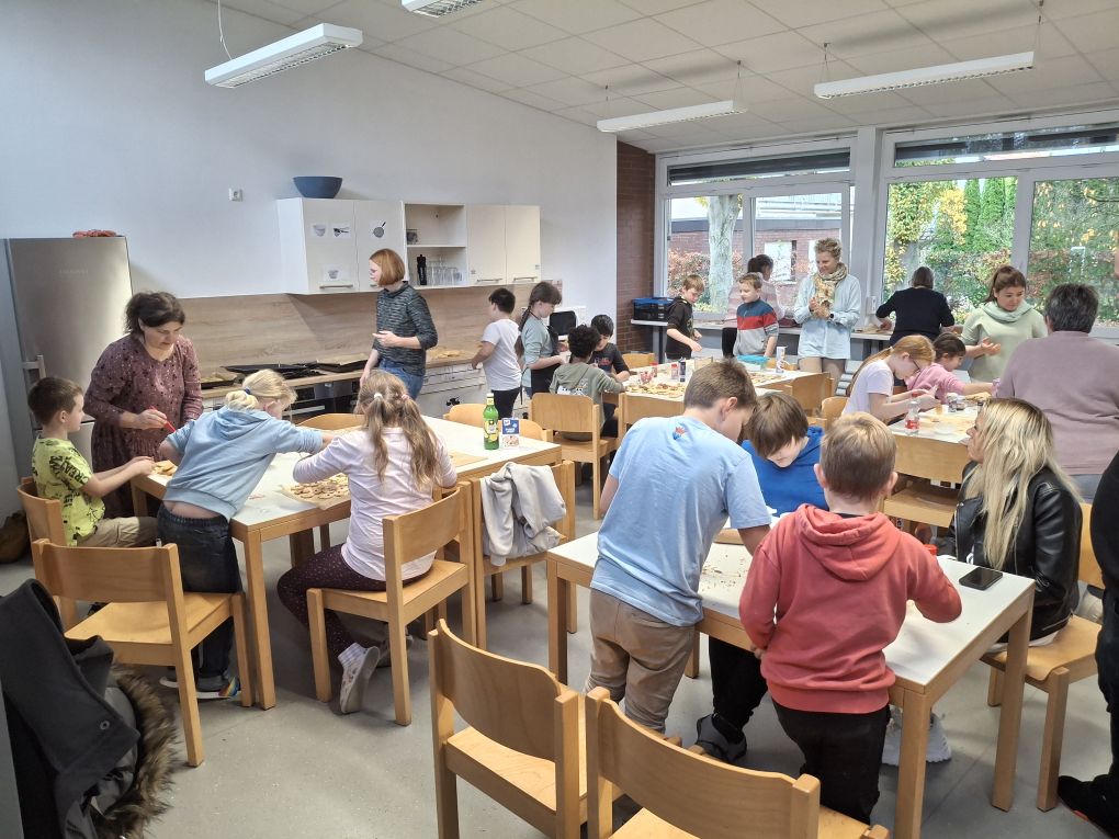 Am 11.11.25 fand in der Klasse 3a ein ganz besonderes Ereignis statt: Das gemeinsame Plätzchenbacken! In fröhlicher Stimmung versammelten sich die Schülerinnen und Schüler zusammen mit einigen Eltern und den Schulbegleiterinnen in der Schulküche. Der Raum war erfüllt von fröhlichem Lachen und dem verlockenden Duft von frisch gebackenem Gebäck. Die Kinder hatten viel verschiedenes Zubehör mitgebracht, und die Vorfreude auf das gemeinsame Backen war riesig. Mit viel Elan und Kreativität wurden Teige geknetet und Plätzchen in verschiedenen Formen ausgestochen. Sogar Spritzgebäck wurde mit einem mitgebrachten Fleischwolf hergestellt. Die Eltern unterstützten tatkräftig und brachten ihre eigenen Tipps und Tricks mit ein. Dabei entstanden nicht nur leckere Plätzchen, sondern auch viele schöne Momente des Miteinanders. Besonders toll war es zu sehen, wie die Kinder im Team arbeiteten, sich gegenseitig halfen und ihre Plätzchen kunstvoll verzierten. Am Ende des Vormittags konnten alle stolz die vielen gefüllten Plätzchendosen bestaunen. Ein herzliches Dankeschön an alle Eltern, die dieses Event möglich gemacht haben! Wir freuen uns schon auf das Genießen der Plätzchen in der Adventszeit!