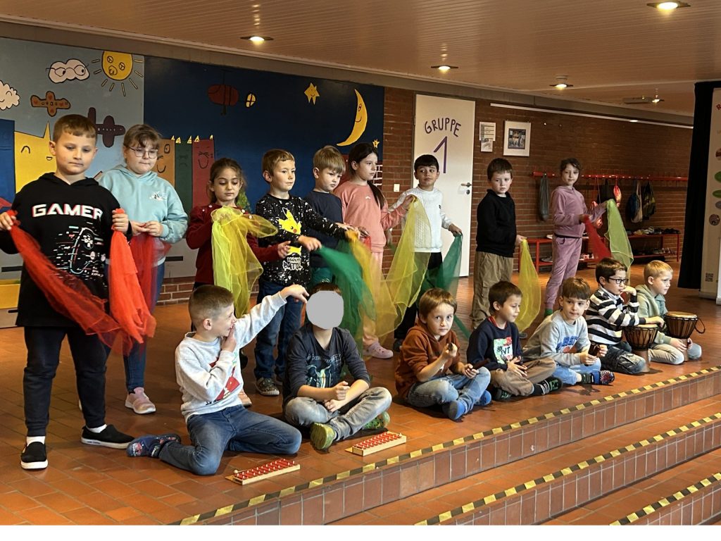 Zum Abschluss tanzte die JÜ1 einen lebhaften Tüchertanz zu dem Lied „Hui, hui, hui“! Der Herbstwind war förmlich spürbar. Ein großes Lob an alle Aufführenden. Das habt ihr super gemacht!