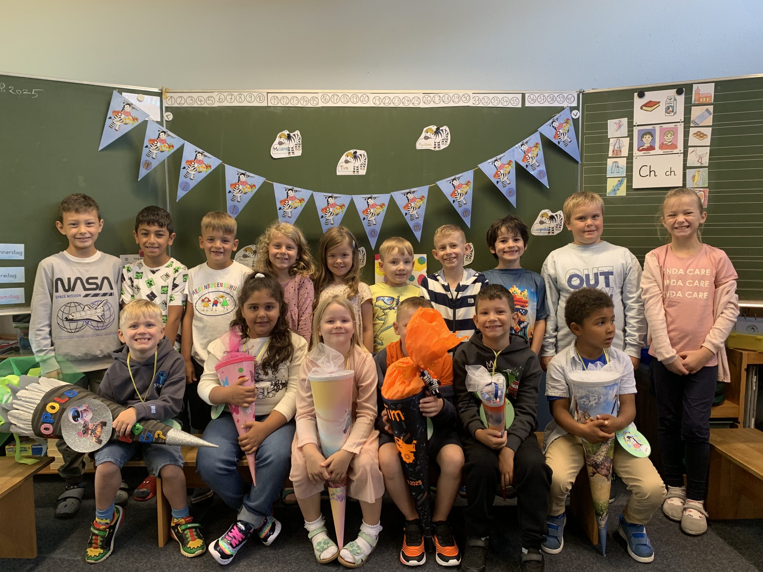 Wir sind die Kinder der Zebraklasse. Im Schuljahr 2025/26 lernen wir mit 17 Kindern in der Klasse. Gemeinsam haben wir sehr viel Spaß! Wir lachen viel zusammen und es wird nie langweilig.