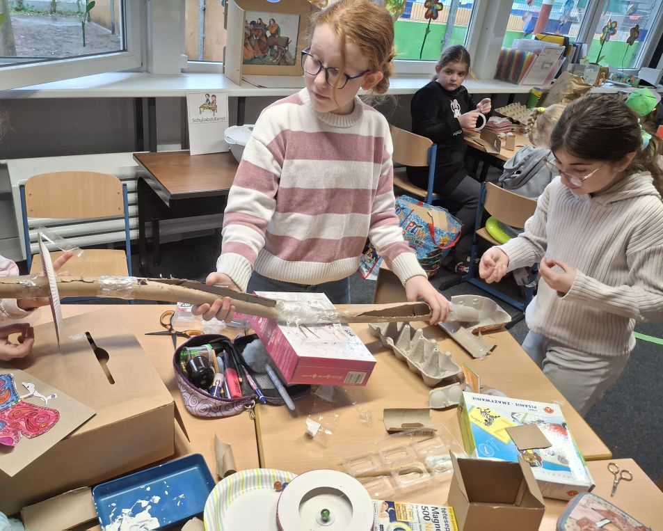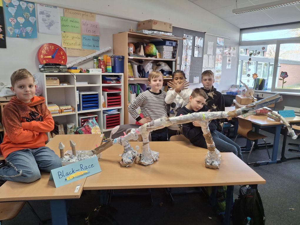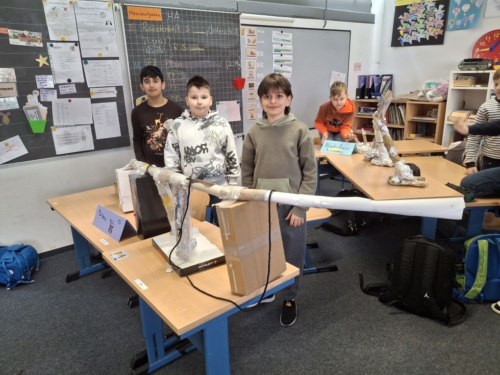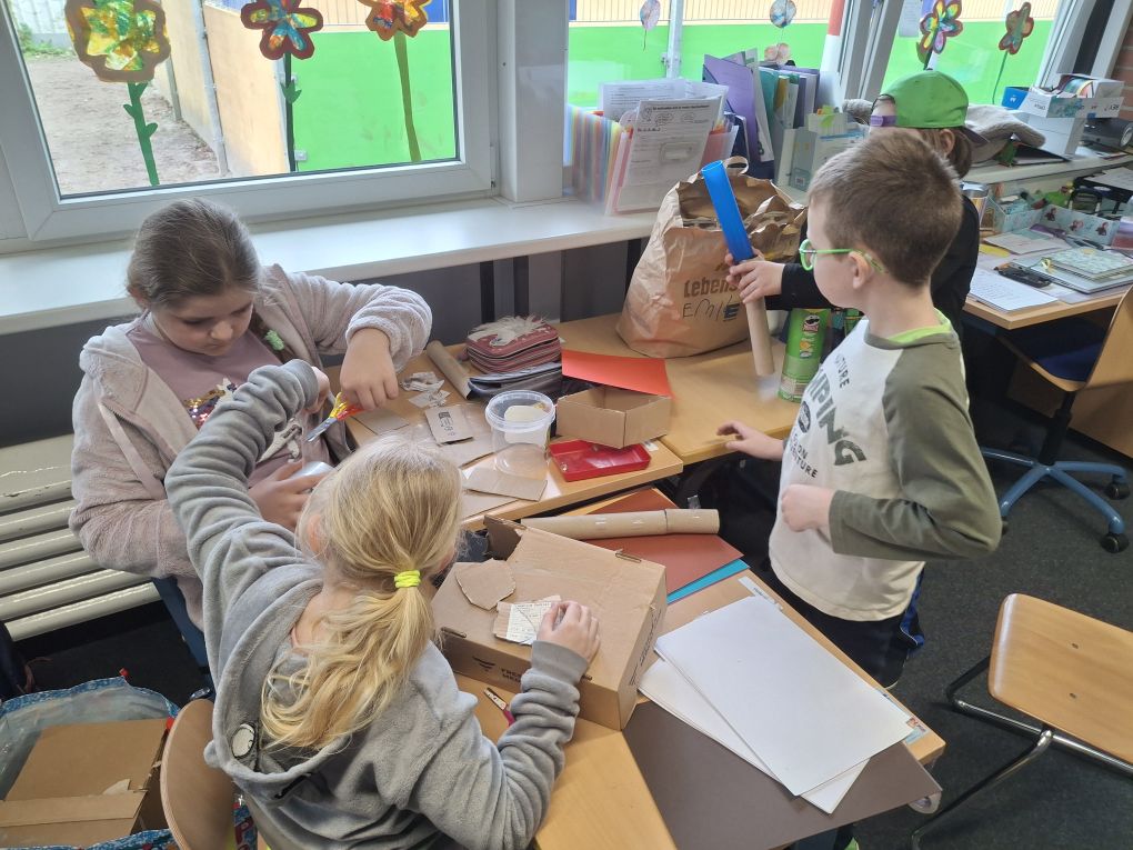 Die ganze Schule hat den Frühling begrüßt. Unsere Klasse hat das Treffen moderiert. Wir haben ins Mikrofon gesprochen und alle begrüßt und verabschiedet. Außerdem haben wir die Lieder angesagt und die passenden Bilder zu den Strophen gezeigt. Wir haben die Texte selbst geschrieben und vorher in der Klasse viel geübt. Es hat Spaß gemacht!