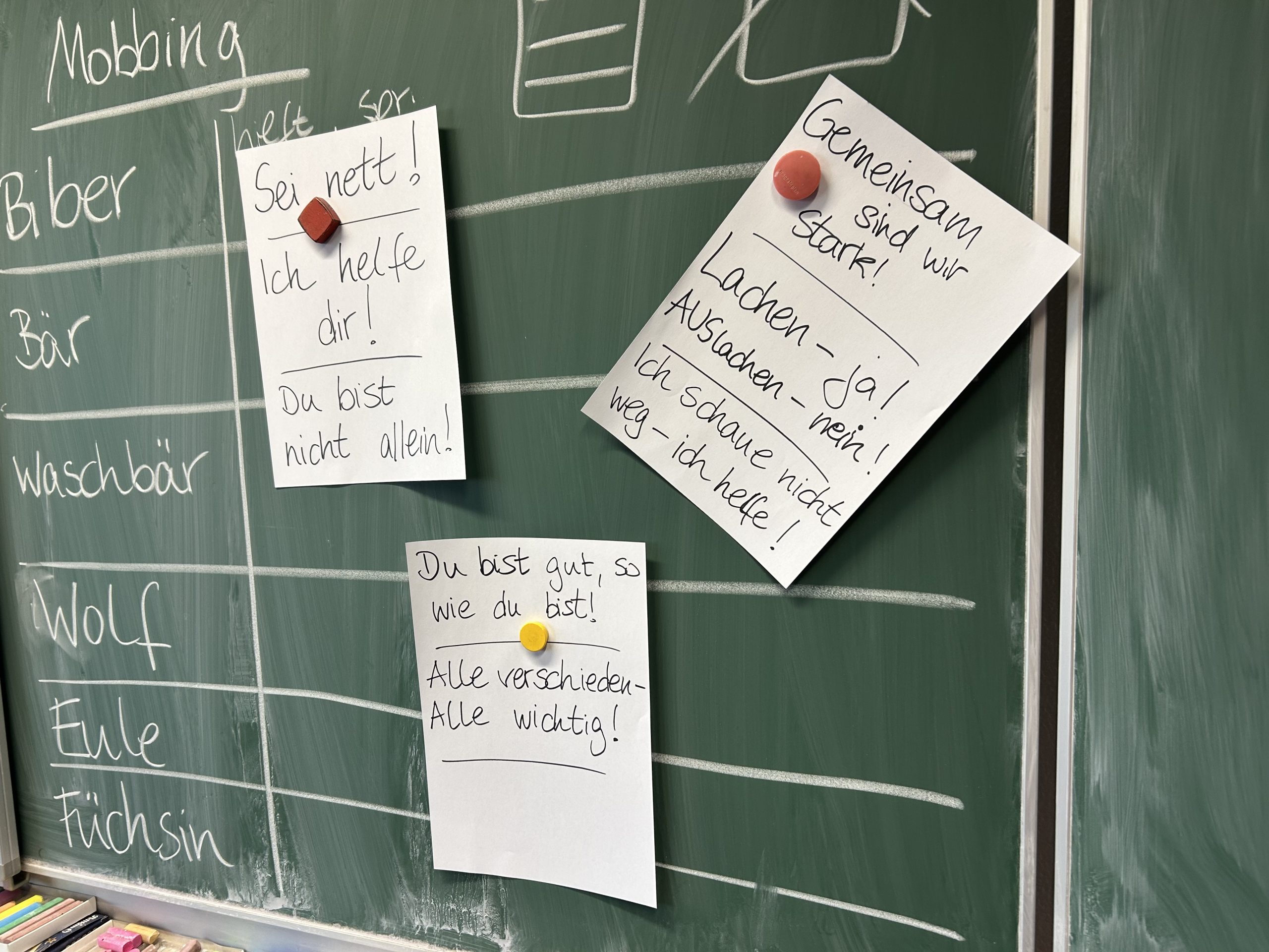 Mobbing bedeutet Ausgrenzung, Beleidigungen oder Gerüchte und kann uns alle treffen. Wir sprechen immer wieder darüber und wollen, dass alle sich hier sicher und ernst genommen fühlen und Hilfen bekommen, wenn es nötig ist.