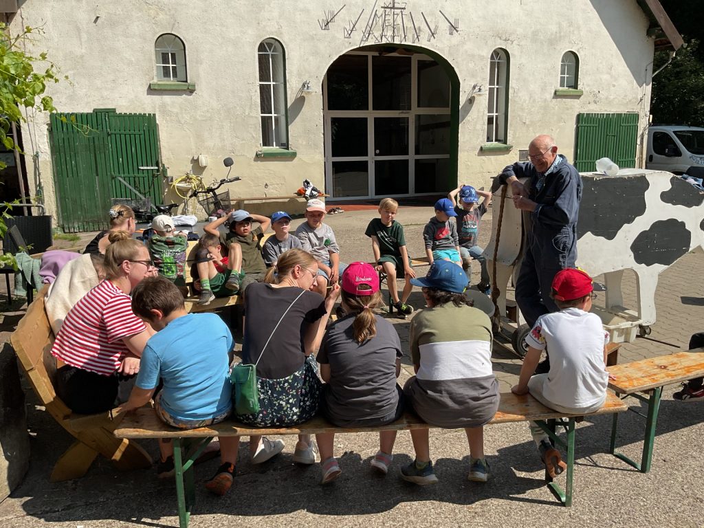 Vom 11. Juni 2025 bis zum 13. Juni 2025 waren die Kinder aus der JÜ 5 und der JÜ 8 auf dem Schulbauernhof Künnemann in Versmold. Bei strahlendem Sonnenschein haben wir am ersten Tag direkt unsere Zimmer bezogen und durften uns (fast) alles auf dem Schulbauernhof anschauen: Wir haben Katzen gestreichelt, Kühe gefüttert und zugeschaut, wie sie gemolken werden. Wir haben direkt die Kettcars ausprobiert und die tolle Fußballwiese mit den Spielgeräten entdeckt. Am Nachmittag haben wir dann gemeinsam Flöße gebaut und abends einen Spaziergang zum Bach gemacht, wo wir am nächsten Tag die Flöße schwimmen lassen wollten. Am nächsten Morgen haben wir gelernt, wie eine Kuh gemolken wird und durften das an einer Holzkuh ausprobieren. Wir haben sogar ein Melkdiplom gemacht! Nachmittags haben wir unsere Flöße schwimmen lassen und dann gemeinsam Wikinger-Schach gespielt – das war toll! Abends haben wir noch lange gespielt und hatten viel Spaß bei unserer Kinder-Disco. Am letzten Tag sind wir dann müde und sehr glücklich vom vielen Staunen, Spielen und Toben nach Hause gefahren.